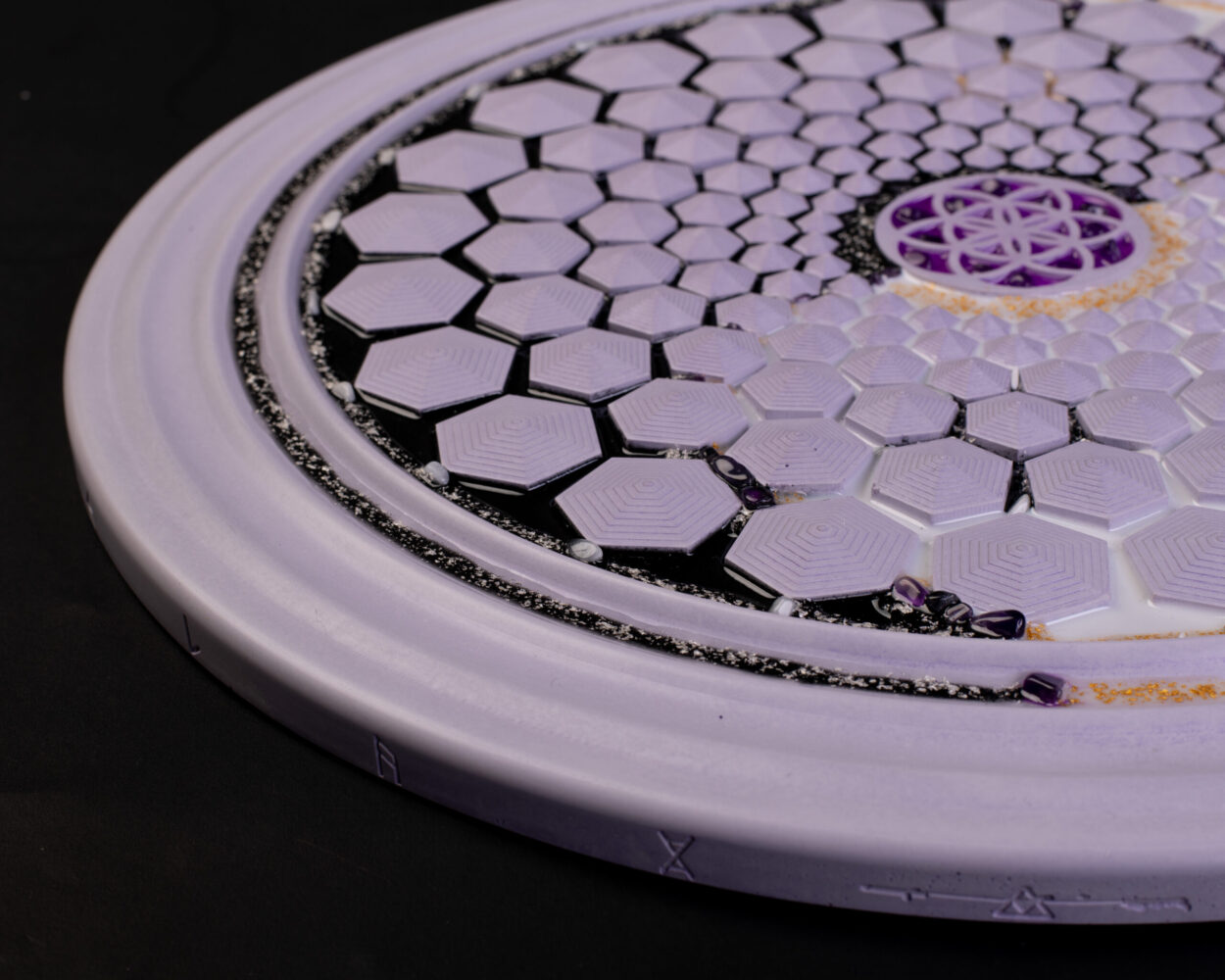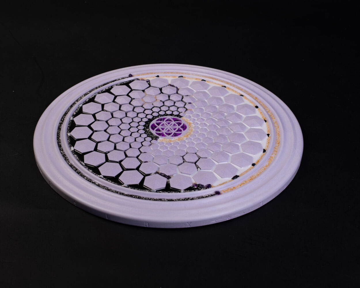 FlowDisc je mimořádně silným tvarovým zářičem, který v sobě zahrnuje základní principy Kosmické posvátné geometrie, ze které je utvářeno vše energetické a vše hmotné v Kosmu.