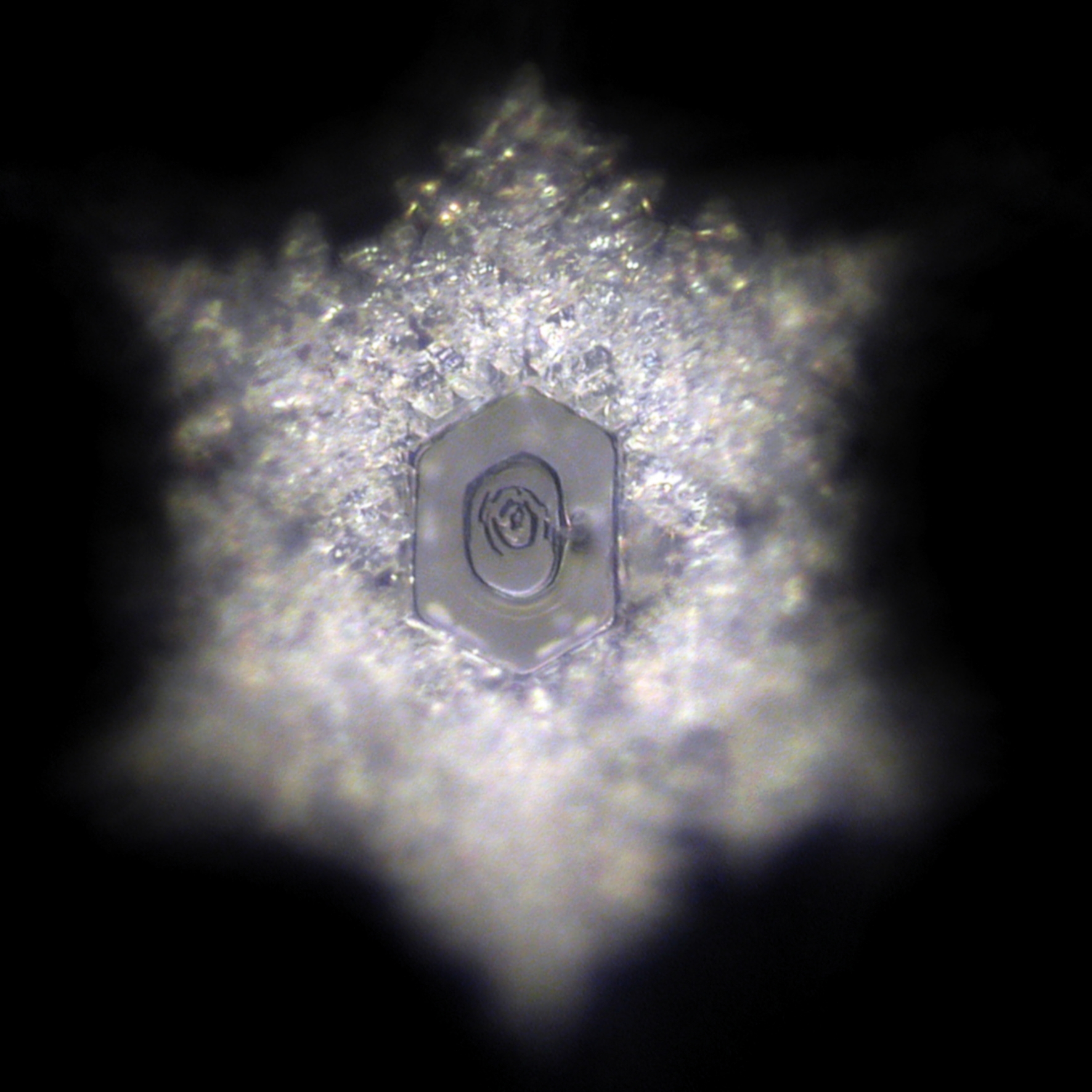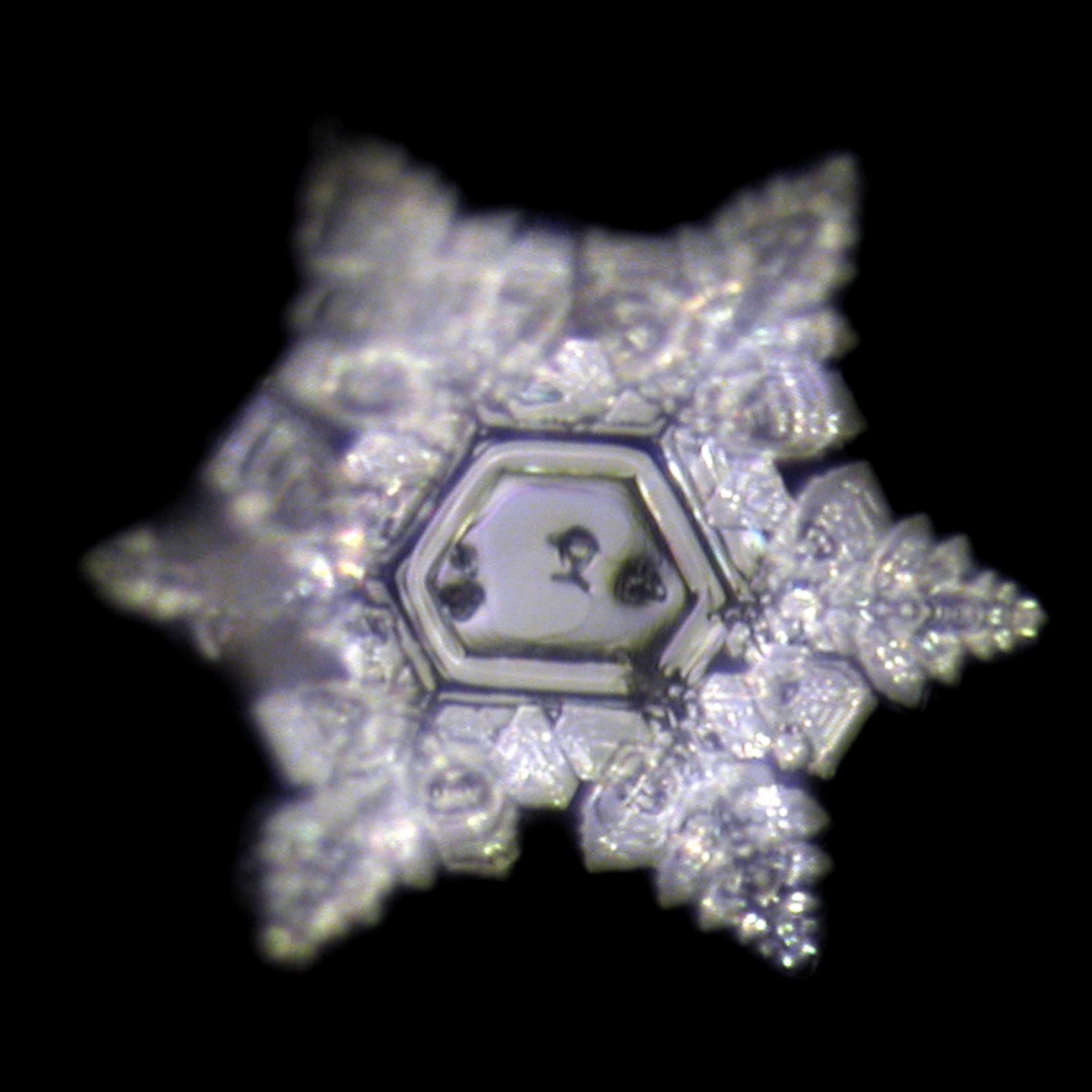 • Krystaly destilované vody, která stála 3h v lahvičce položená na zapnutém wifi routeru ve vzdálenosti 3m od  FlowDiscu